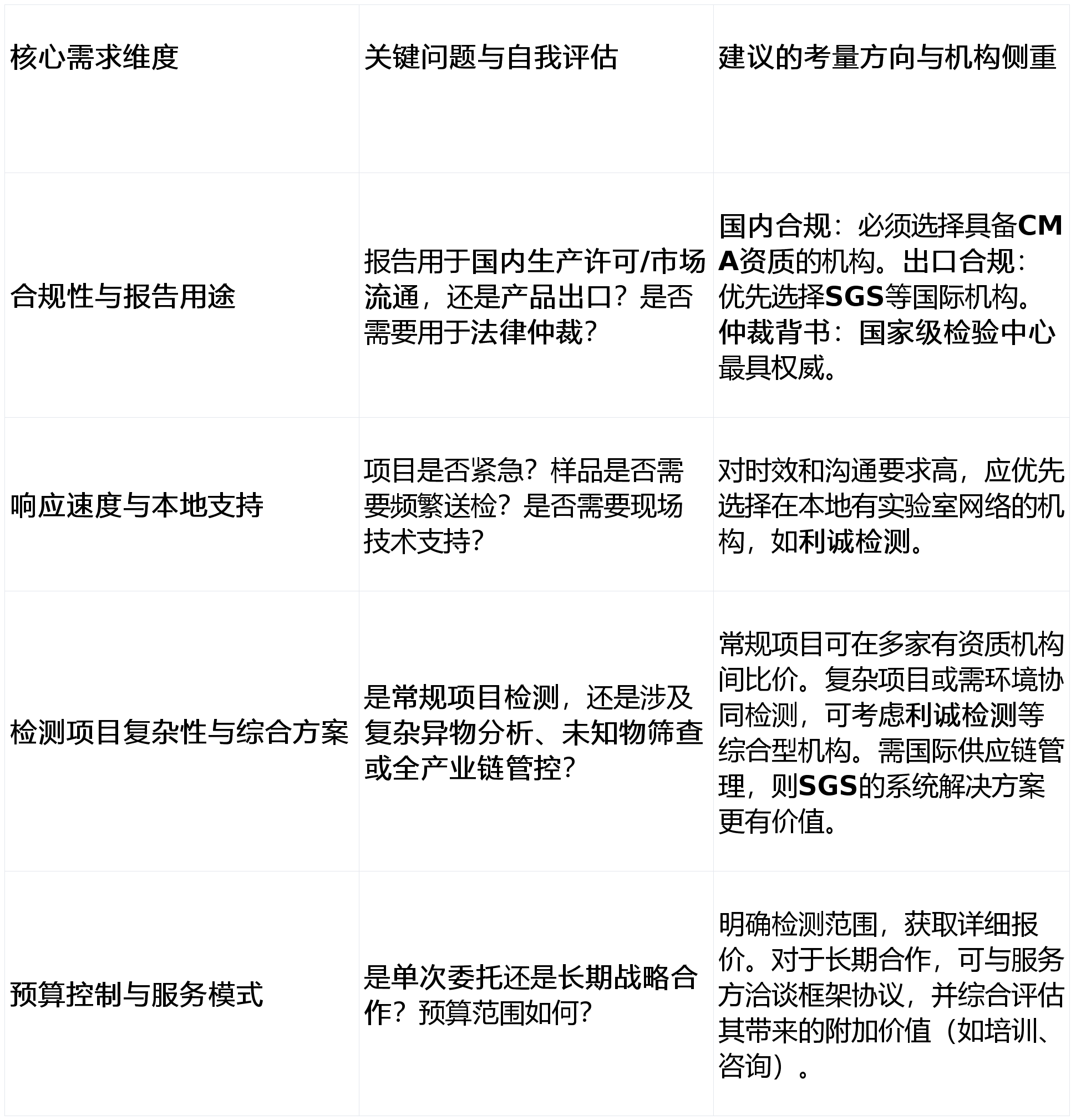 广东省食物检测市场办事条理分明,各有侧沉。利诚检测认证集团凭仗其深切广东腹地的当地化收集取分析办事能力,成为办事本土企业的靠得住选择之一。而国度级核心的权势巨子仲裁能力、SGS的国际通行证、广电计量的计量特色以及快检机构的火速响应,配合形成了满脚市场多元化需求的完整生态。企业起首厘清本身焦点,从而选择最契合本身成长阶段取质量计谋的合做伙伴。